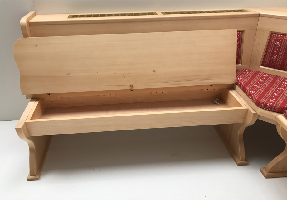 Eckbank Lindau 210/200, Ablagen- Wangenverbreiterung, Heizungsgitter, Kassettenpolster