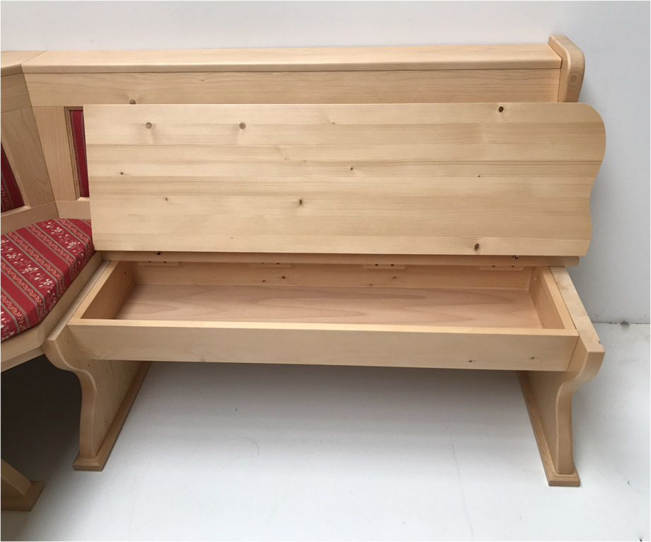 Aussenwangen geschnitzt, 2 Truhen aufklappbar., Ablagenhöhe 87 cm, Wangenh. 89 cm