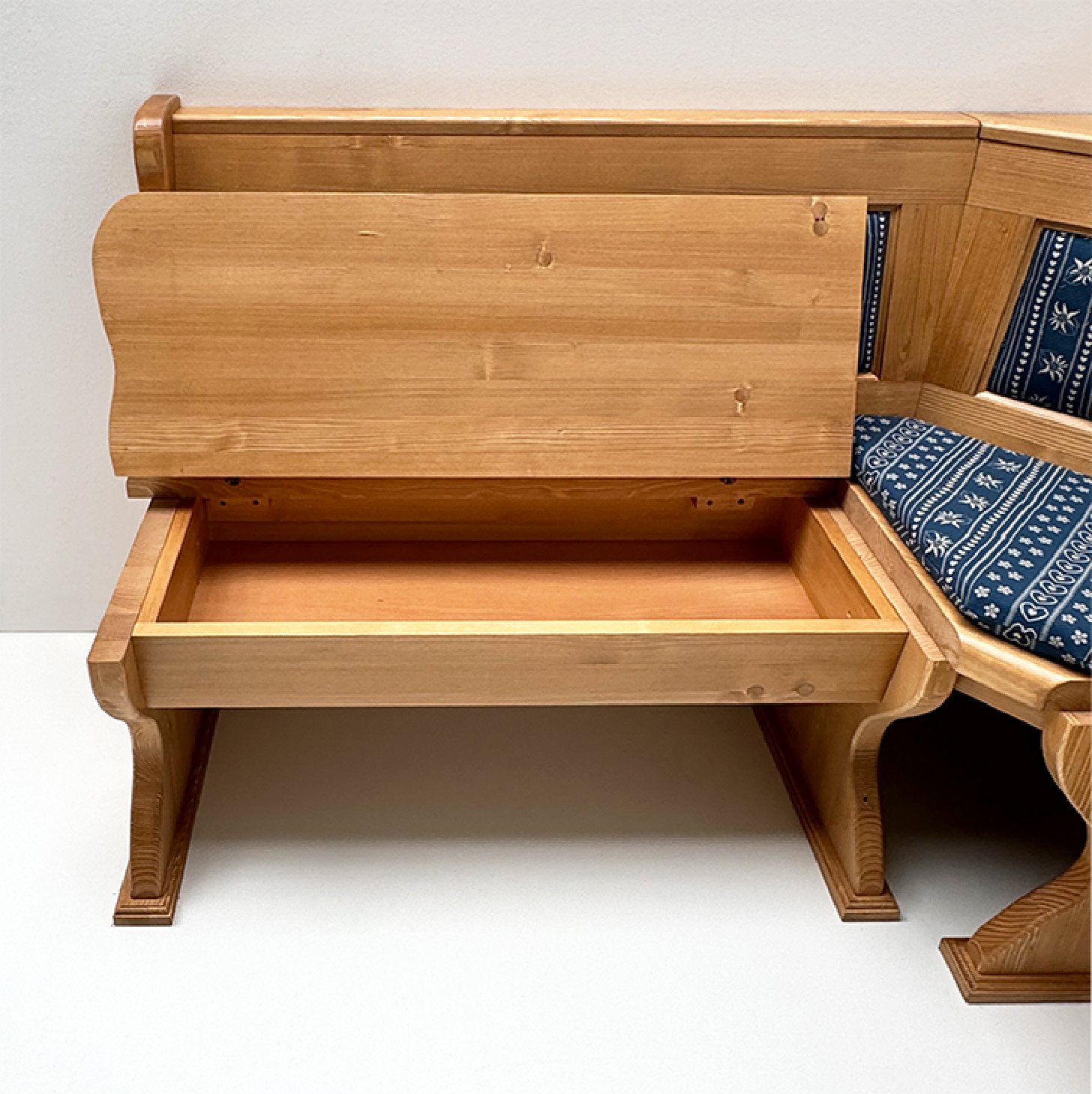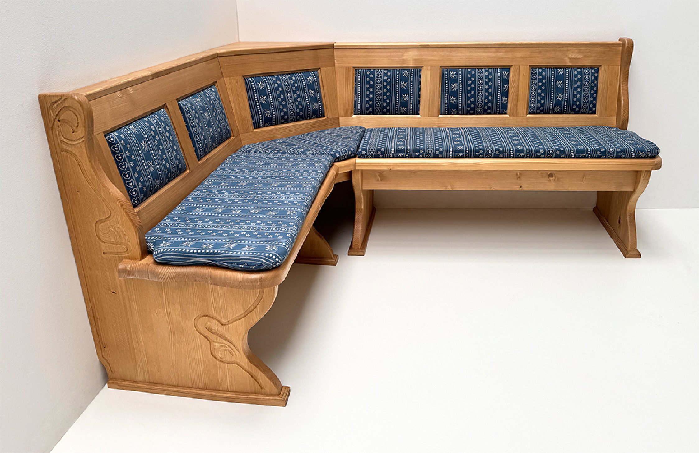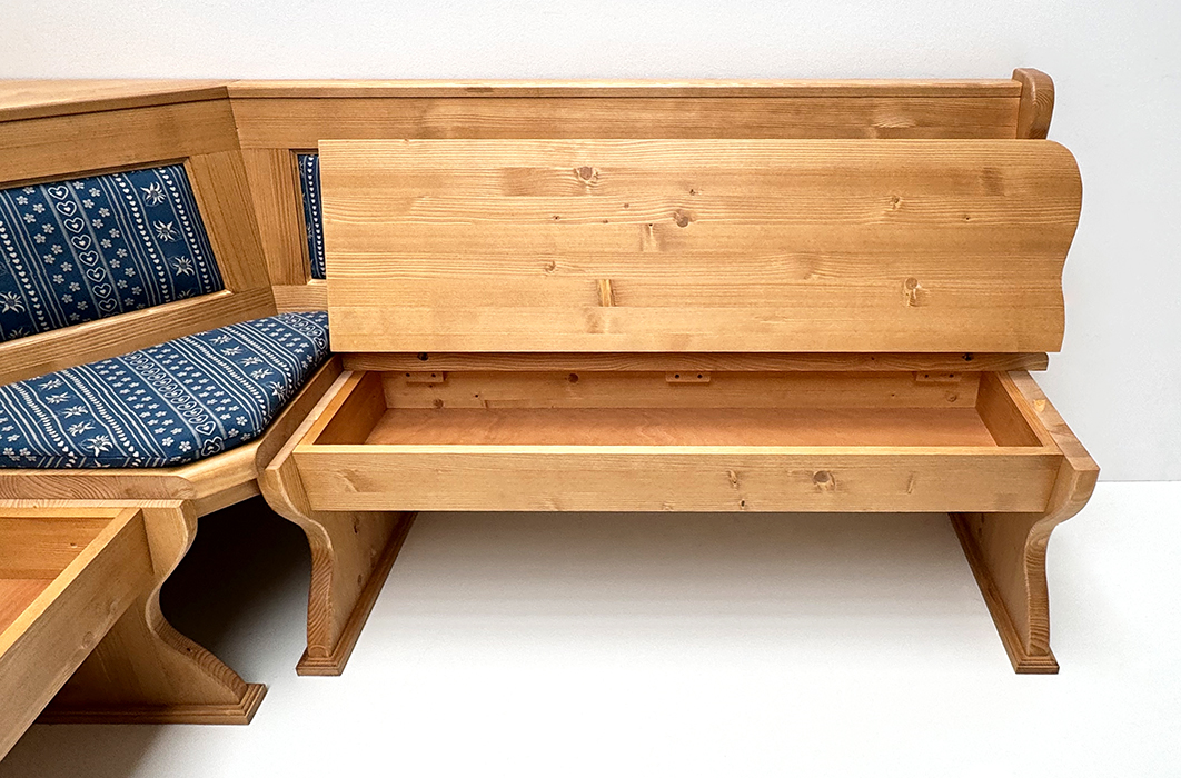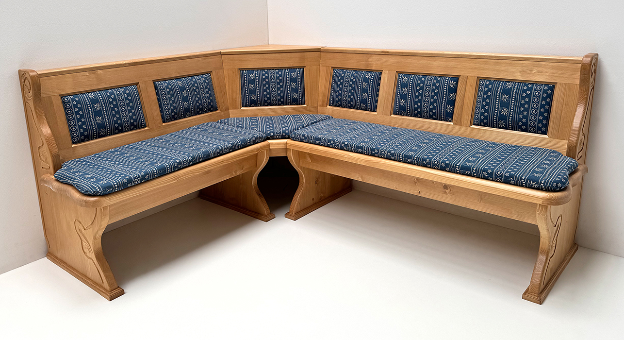 Eckbank Lindau 165/195 cm, Kassettenpolster, Wangen geschnitzt, Truhen, Polster genäht, AF-74854-3