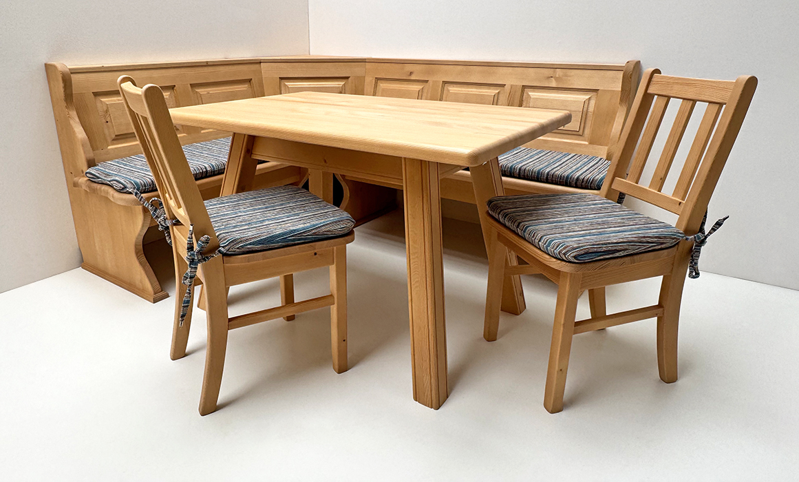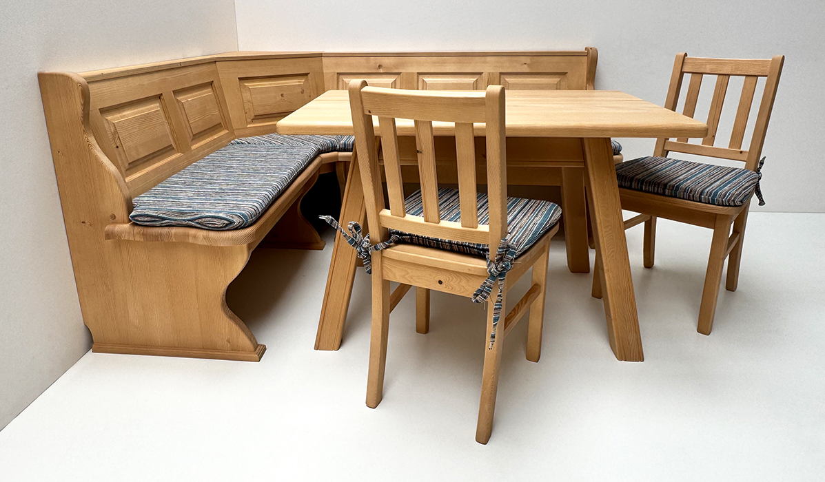 1 Eckbank Modell Lindau: Stellmaß A> 165/195 cm, Außenwangen glatt, Truhen beidseits