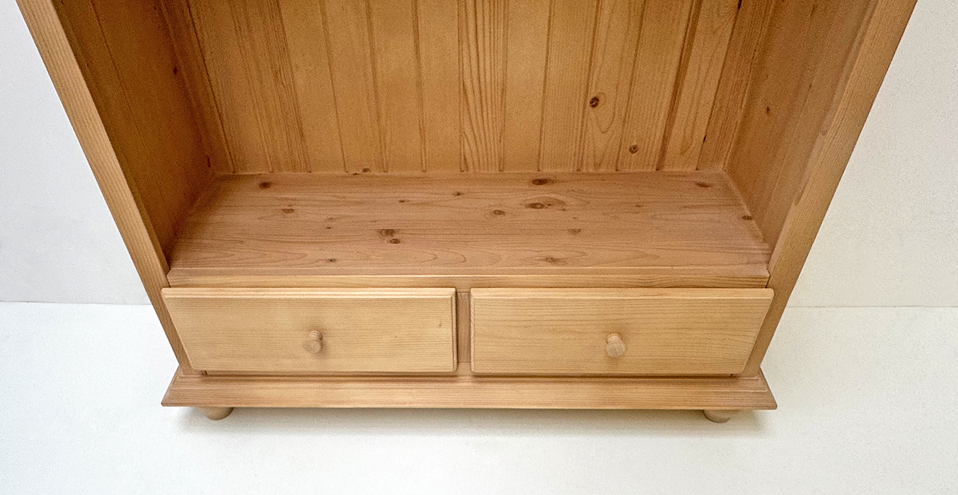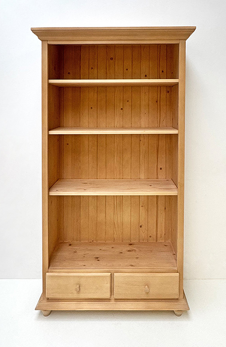 Bücherregal Füssen breit, 2 Schubladen, Holzknöpfe, Rosner gewachst