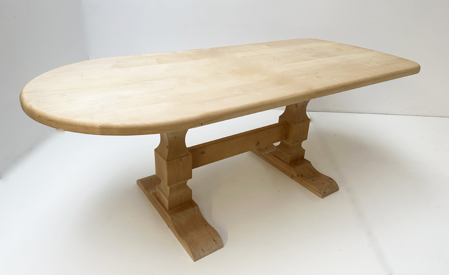 Klostertisch Mittelsäulen-Tisch mit Gefrästen Säulen, 90/200 cm Ovalplatte, Ahorn massiv geölt