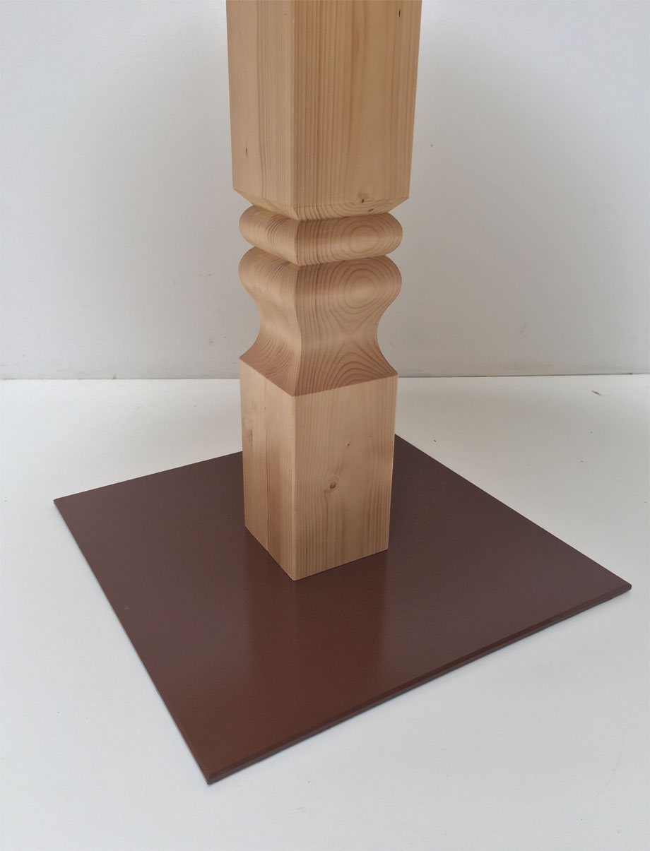 Mittelsäulen-Tisch gefräst mit Fußscheibe Metall , Fichteplatte D100 cm