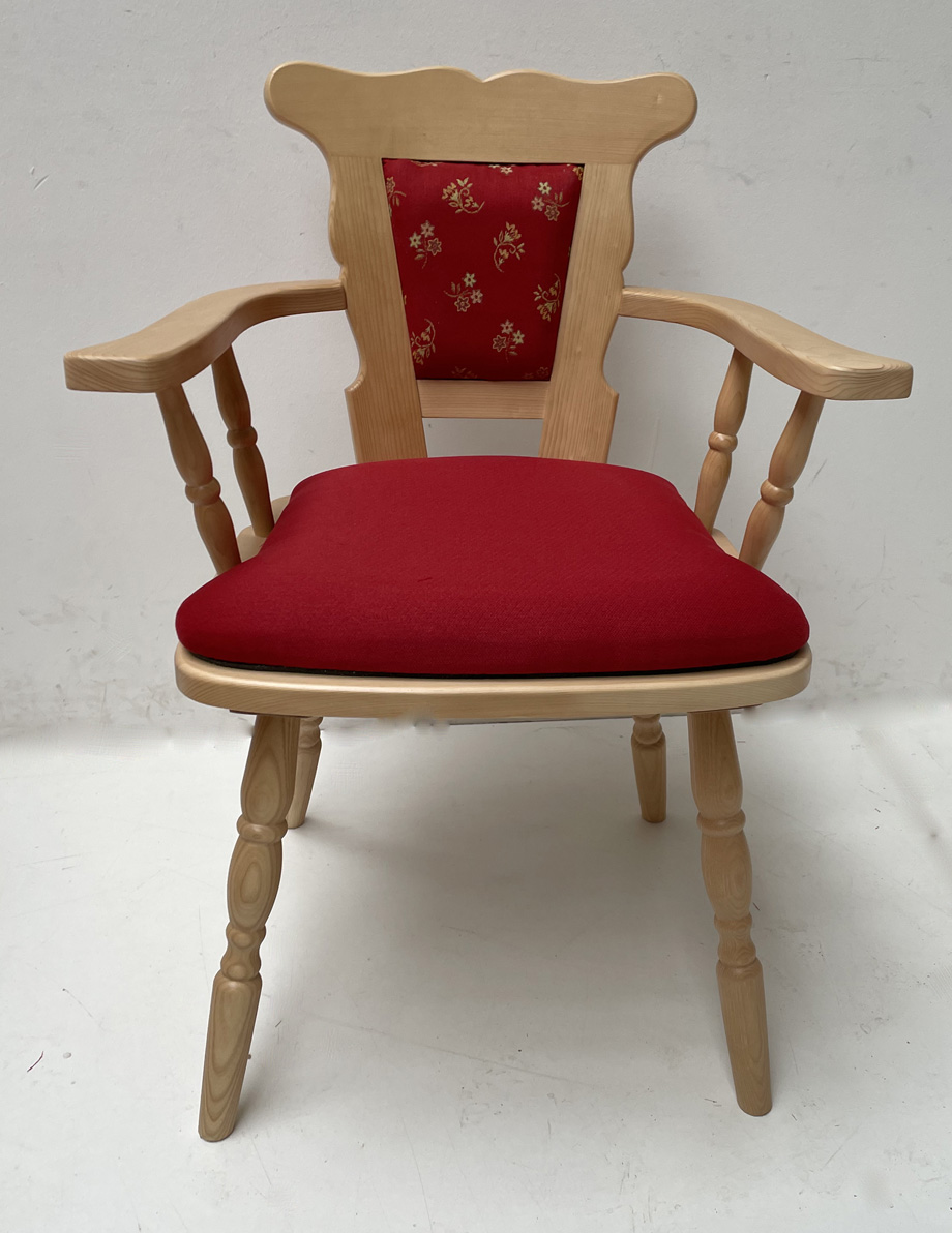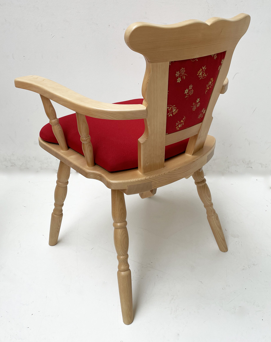 Bauernstuhl Armlehnstuhl Modell 77 mit Rückenpolsterung, in Fichte, Rosner gebeizt und lackiert