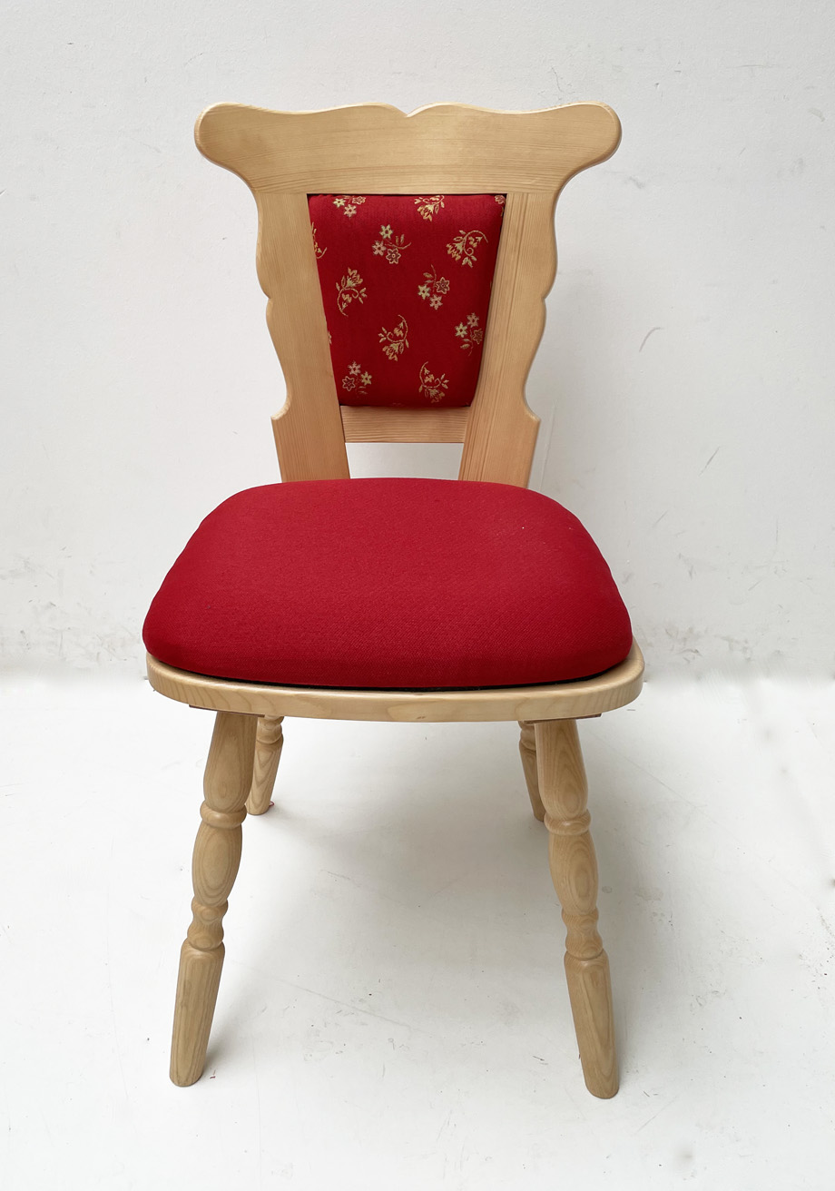 Bauernstuhl Modell 77 mit Rückenpolsterung,  in Fichte,  Rosner gebeizt und lackiert