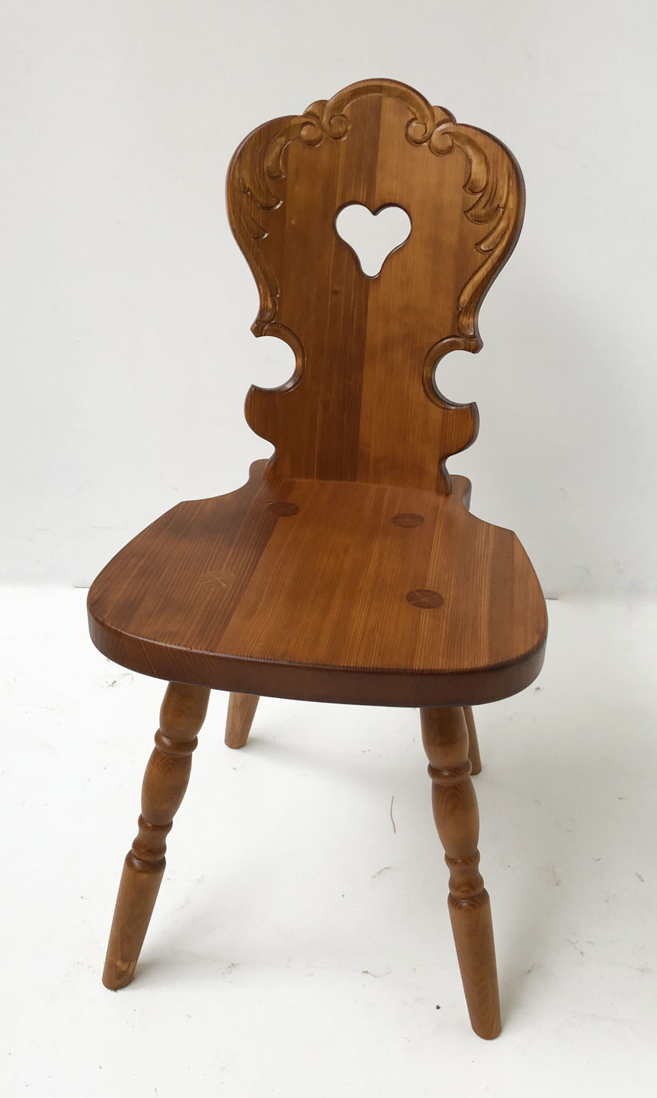 Bauernstuhl Objekt, Fichte , geschnitzt, gedrechselter Fuß , Clou 2206, Walker 50