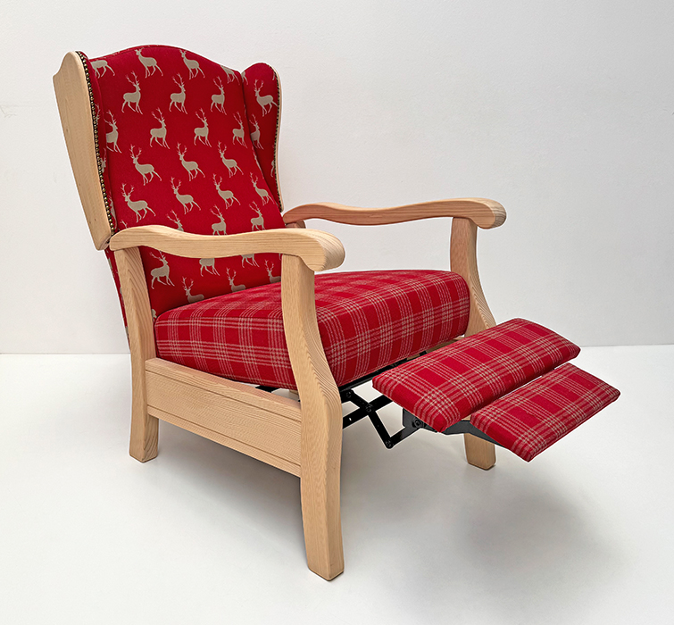 Fernsehsessel TV-Sessel Inzell Ohrenbackensessel, Hirsch rot TS-6177 Karo rot TS-6165