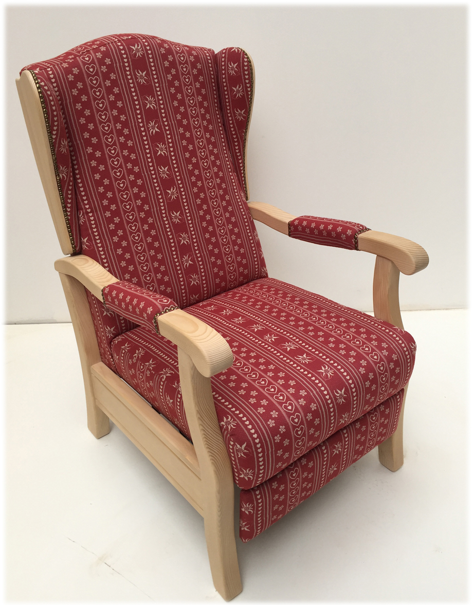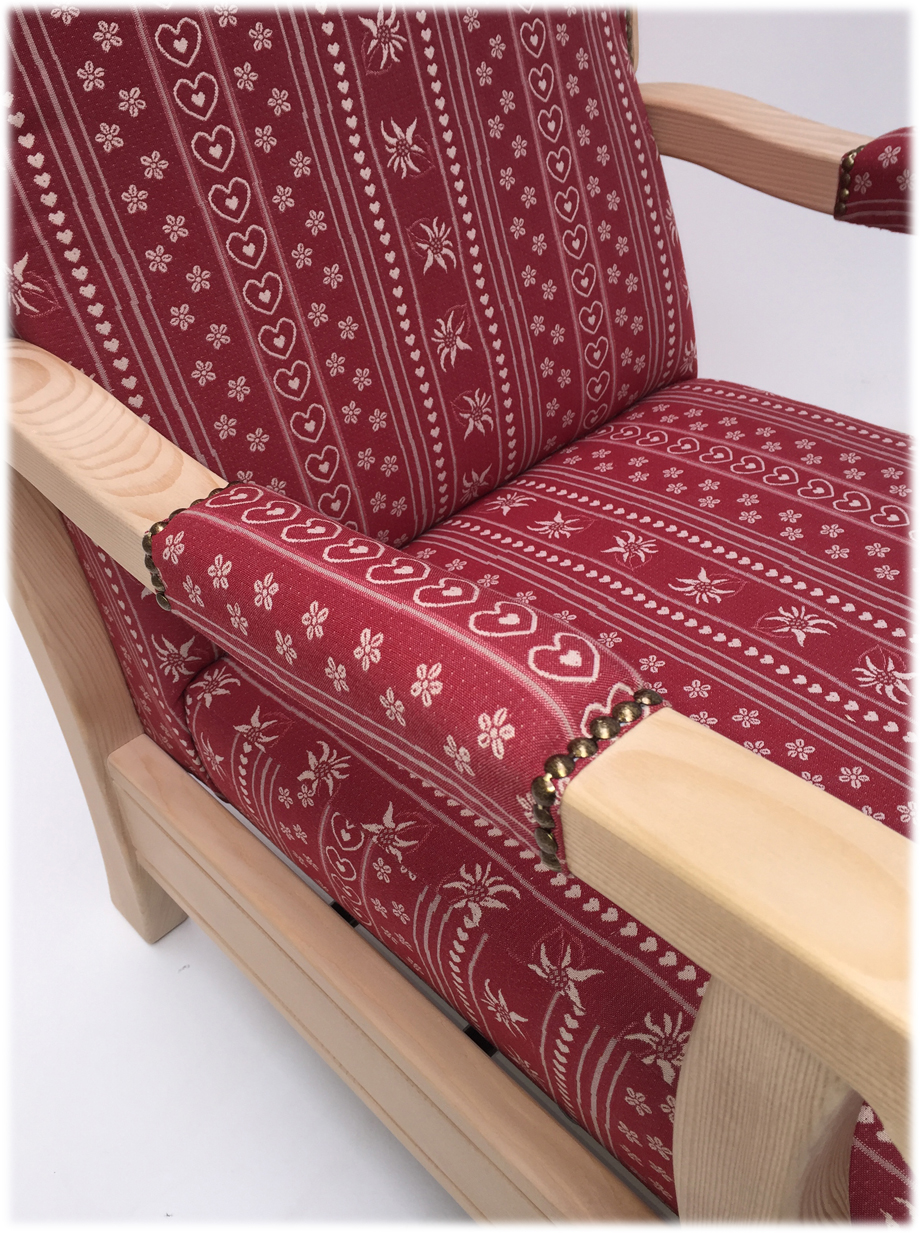 Polsterung Komfort Kaltschaum, Holzteile: Fichte Rosner gewachst, Stoffgruppe 1, Sonderanfertigungen in Ausführung, Farbtönen und Stoffe sind nach Anfrage und Angebot möglich! Abm. 64/112/74 cm, B/H/T cm