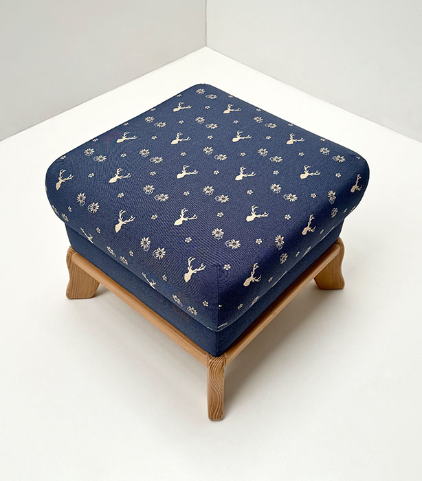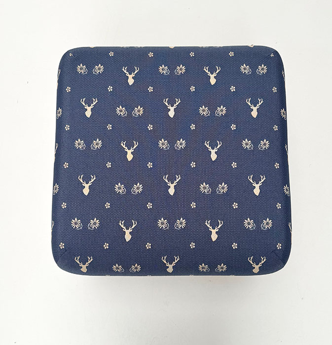 Hocker Sterzing Stoff TS-3003, Hirsch blau, TS-3017, Uni Punkt blau, Landleben