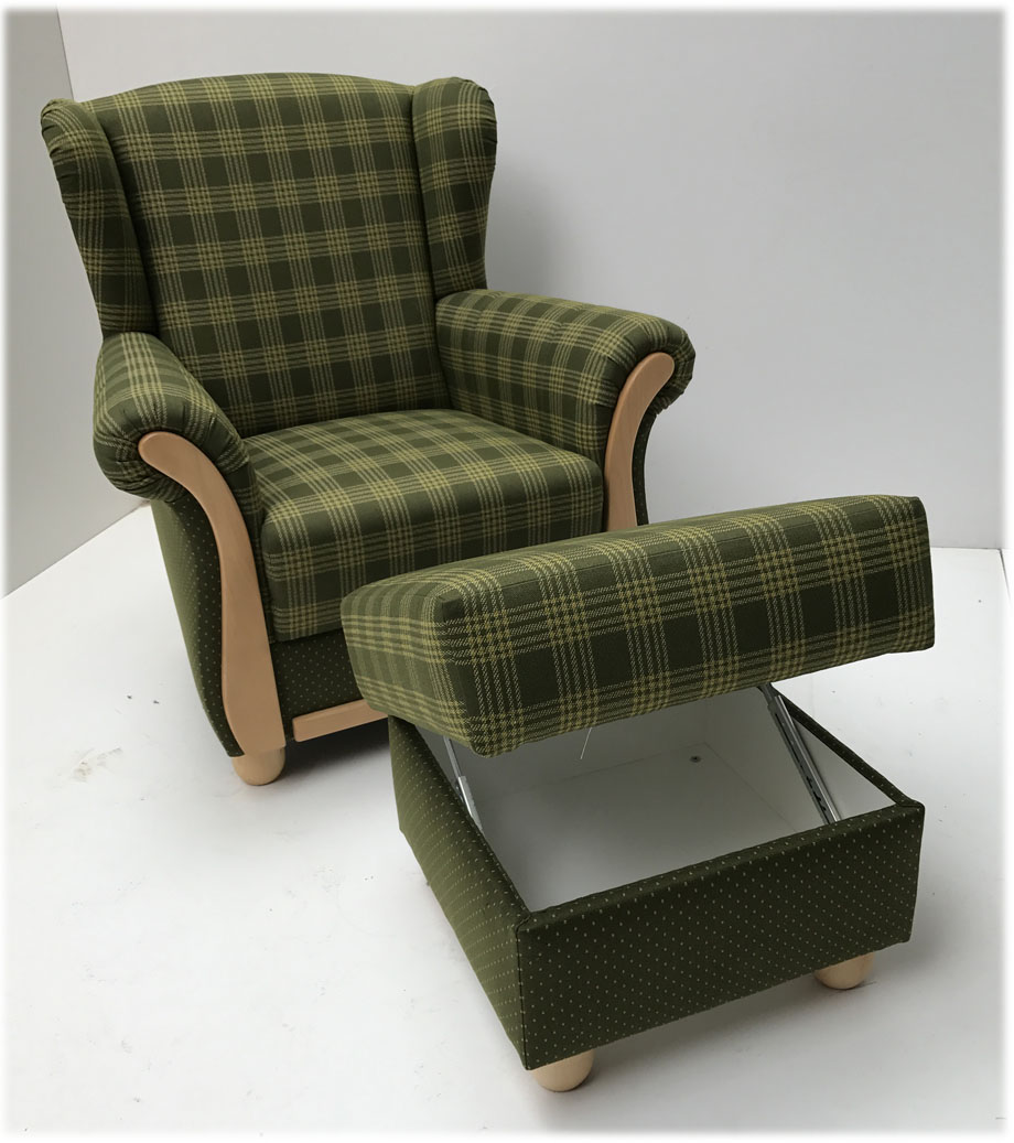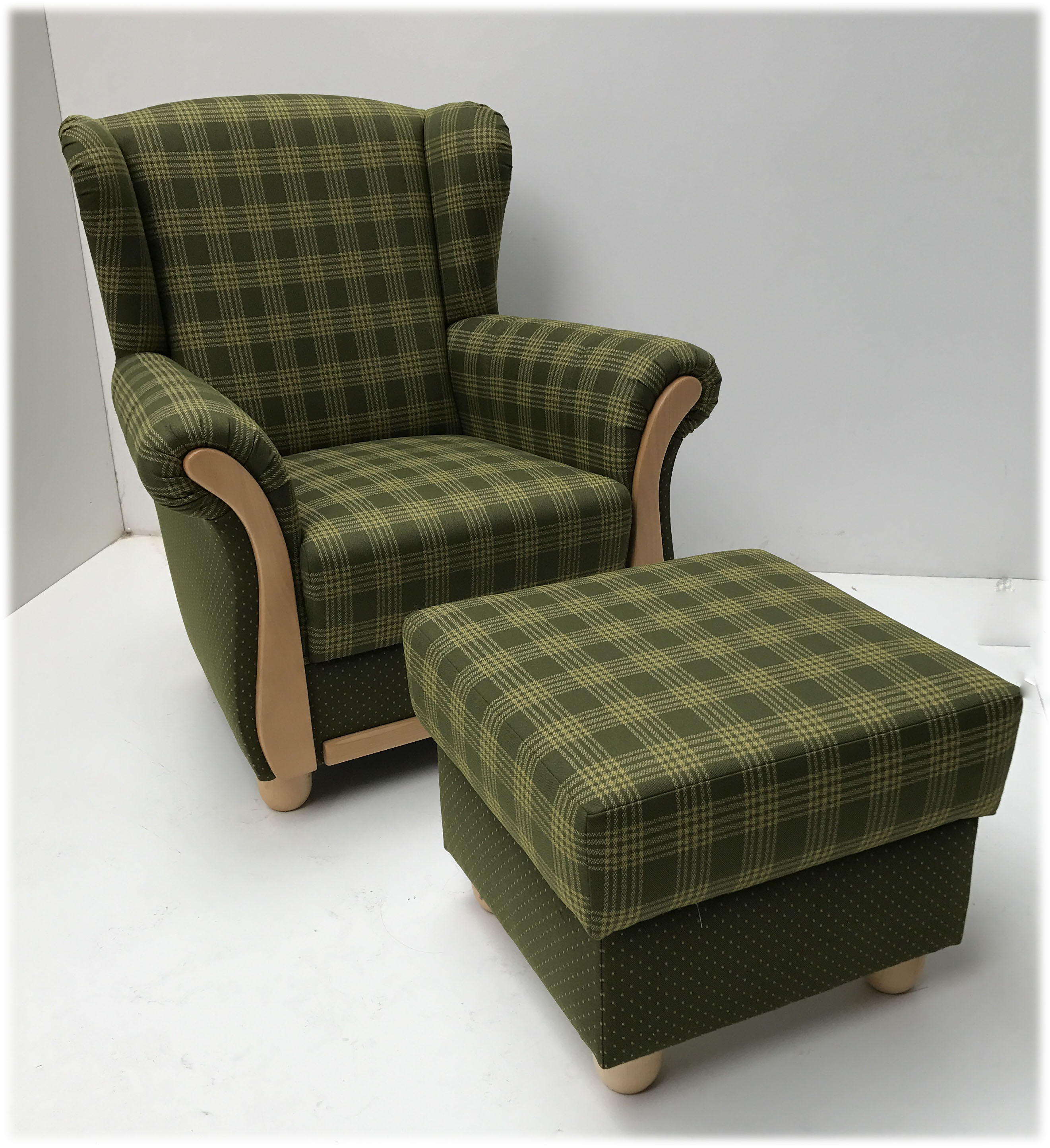 Stoffeinteilung Rücken, Armlehnen und Sitz TS-6168 Karo, Rest, TS-6161 Uni Punkt