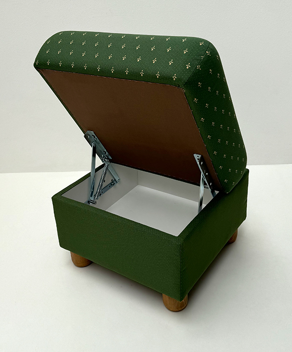 Polsterhocker ist klappbar mit Stauraum im Sitz