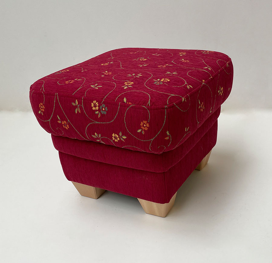 Polsterhocker Wallis 344-07, Stoff Pöchlarn Ranke Bordeaux, Pöchlarn uni bordeaux