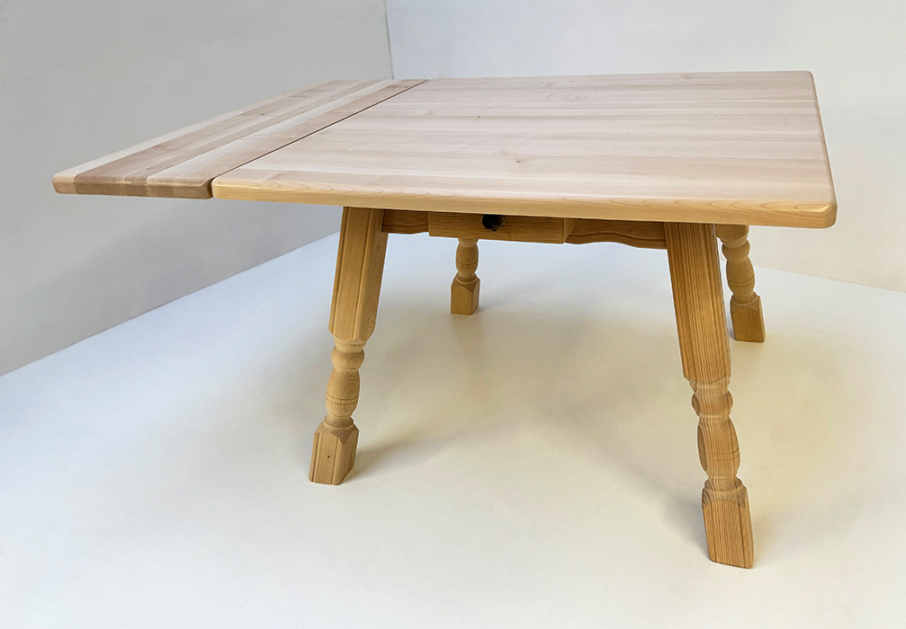 Vierfußtisch 4510G Rosenheim, mit Schubladen, gerade Zarge, gerader Fuß, Fichteplatte 110/110 cm
