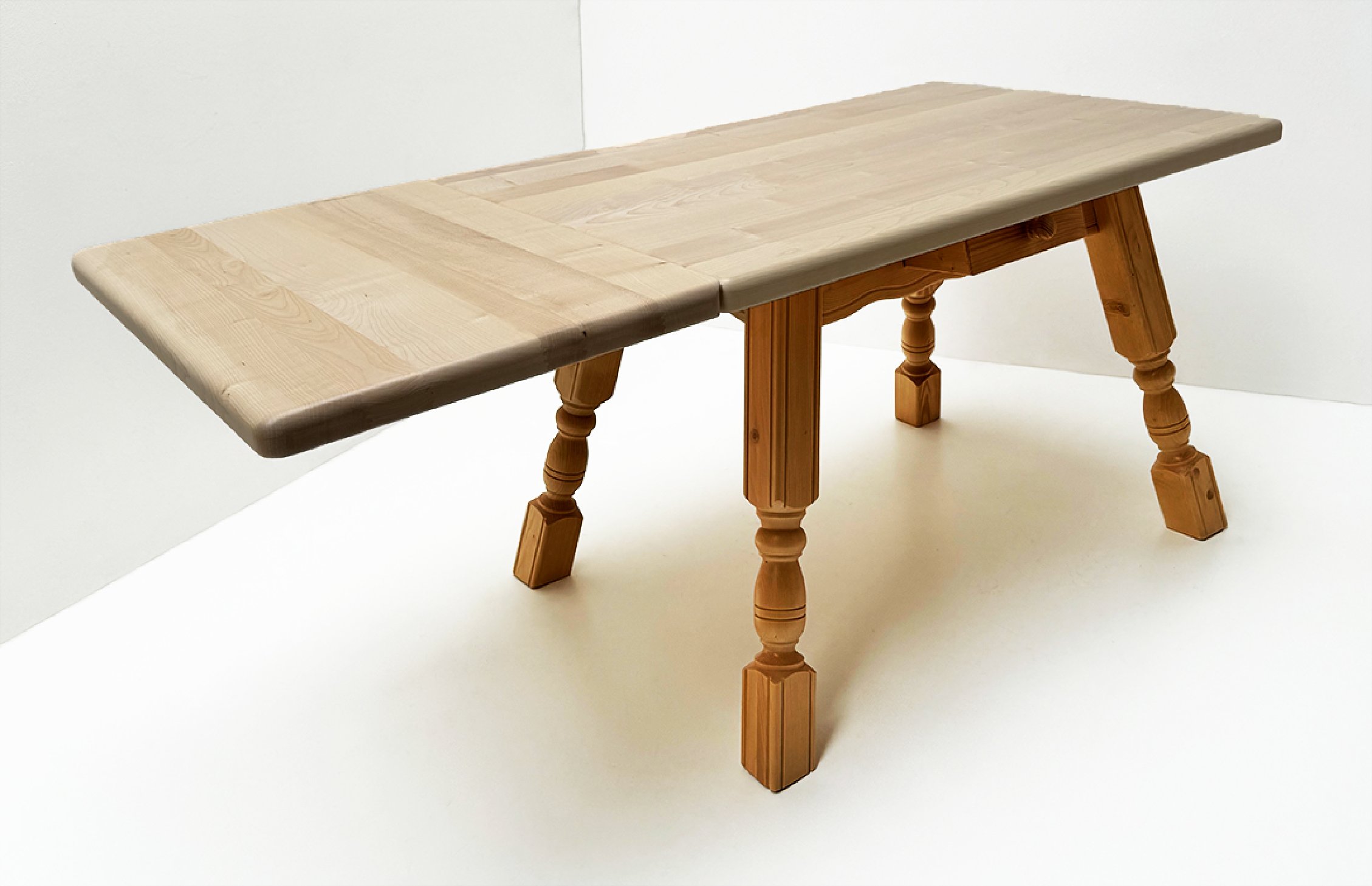 Vierfußtisch 4510 mit Schubladen, 120/80 cm, Ahornplatte, Ansteckplatte 50 cm