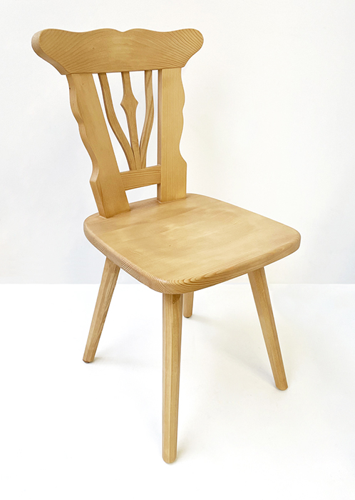 Rückenlehne gebogen, Sitzfläche gegratet und gekehlt, Fichte Rosner lackiert