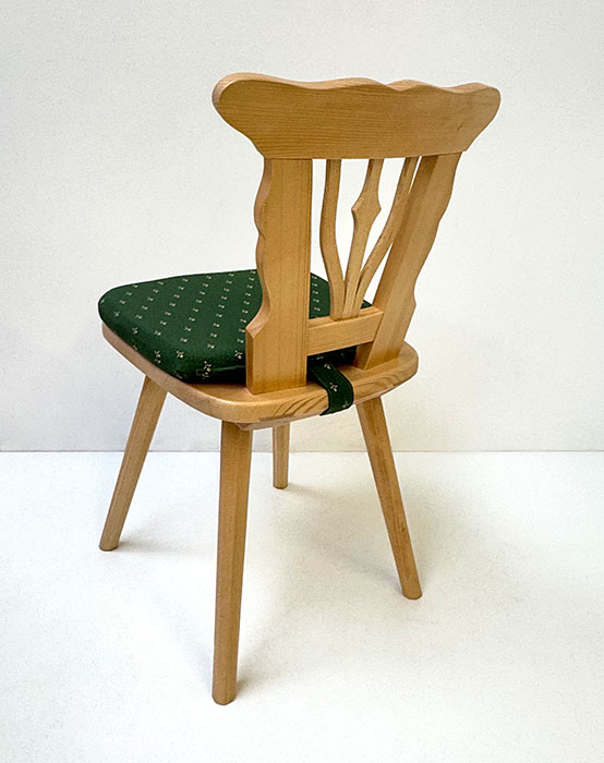 Bauernstuhl Munich, München, gedrechselter Fuß, Fichte, Rosner lackiert, Polster genäht, Kundl grün