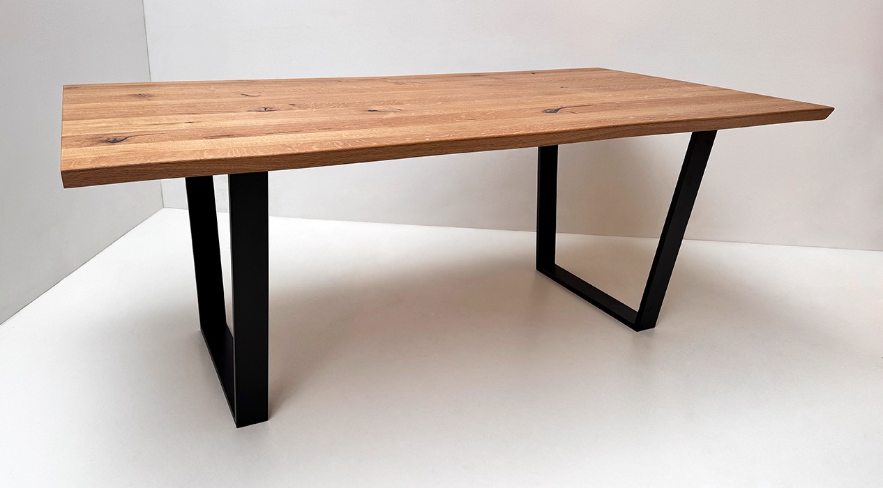 Baumtisch Tisch Oviedo 4, 180/90 cm, ohne Mittelfuge, Wildeiche geölt, Metallgestell
