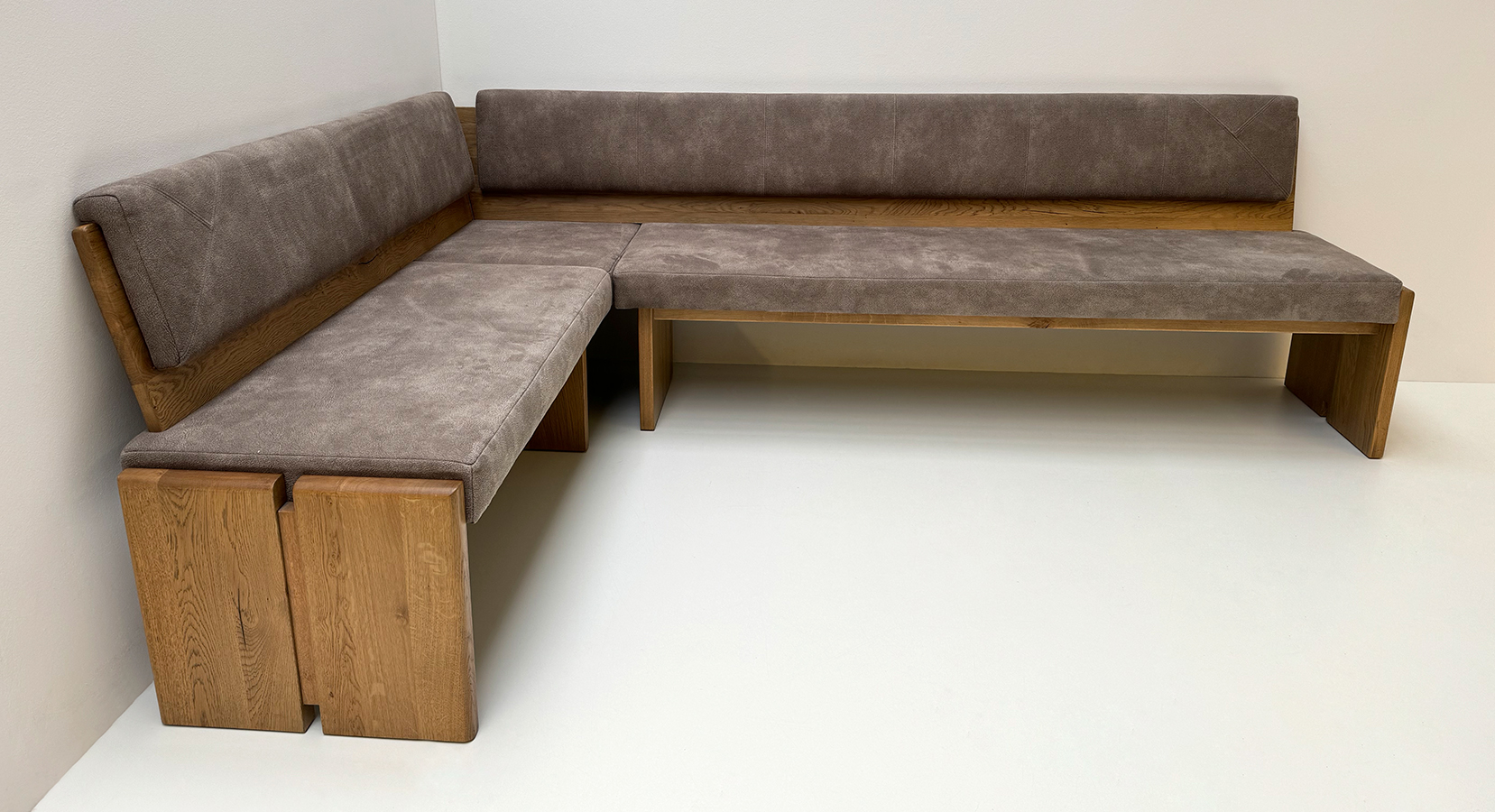 Sondermaß Massivholz Eckbank Modell SUNDAY, Serie Naturnah Möbel, Schenkelmaß 180/270 cm, Wildeiche lackiert
