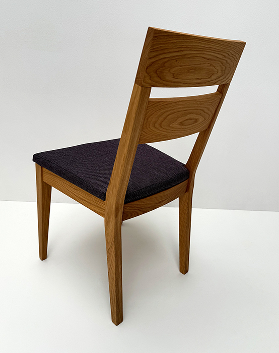 Stuhl Mod. Filippa, Sitz Vollpolster und Lehne Massivholz , Abm: , Höhe 89 cm, Sitzhöhe 45, Breite 46 cm, Tiefe 54 cm, Holz: Wildeiche, Oberfläche: geölt, Festpolster
