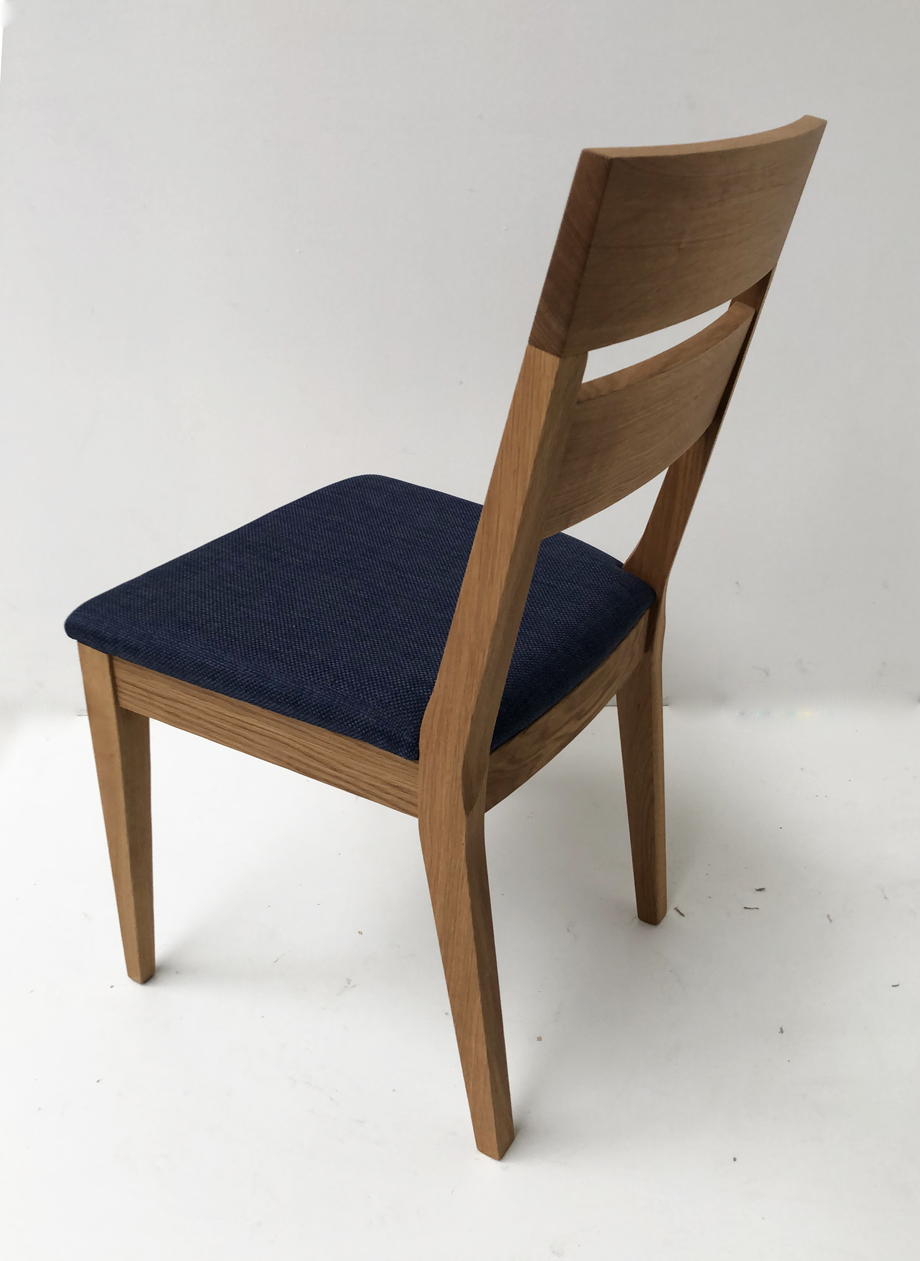 Stuhl Mod. Filippa, Sitz Vollpolster und Lehne Massivholz , Abm: , Höhe 89 cm, Sitzhöhe 45, Breite 46 cm, Tiefe 54 cm, Holz: Wildeiche, Oberfläche: geölt, Festpolster