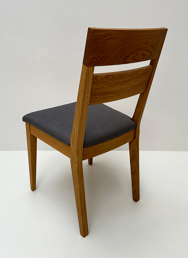 Stuhl Mod. Filippa, Sitz Vollpolster und Lehne Massivholz , Abm: , Höhe 89 cm, Sitzhöhe 45, Breite 46 cm, Tiefe 54 cm, Holz: Wildeiche, Oberfläche: geölt, Festpolster
