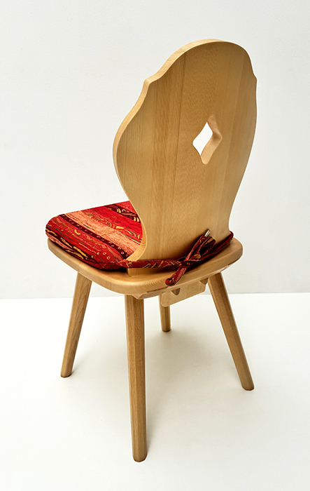 Bauernstuhl 1010 mit gebogener Rückenlehne, Rosner lackiert, Polster genäht, Pocking bordeaux
