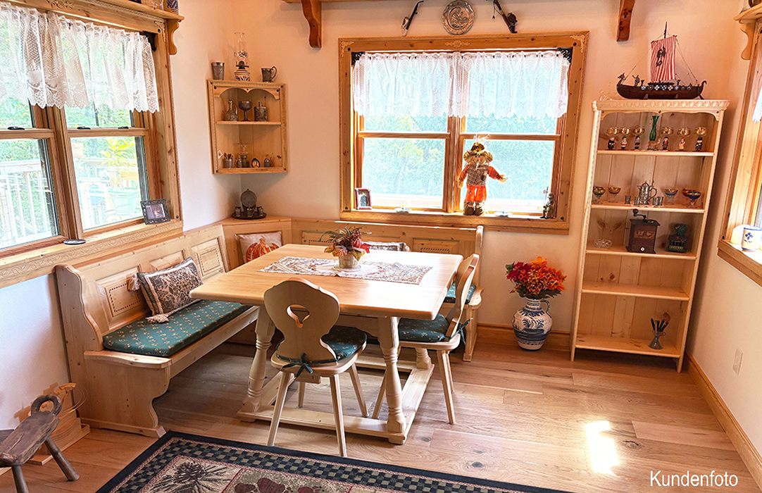 Eckbankgruppe BOZEN, Fichte massiv, Rosner gebeizt und lackiert: