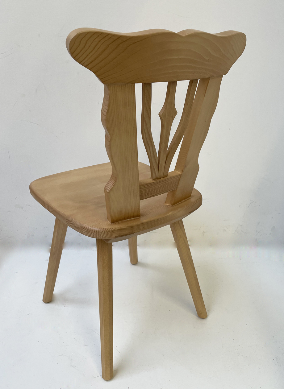 Rückenlehne gebogen, Sitzfläche gegratet und gekehlt , Fichte Rosner gebeizt und  lackiert