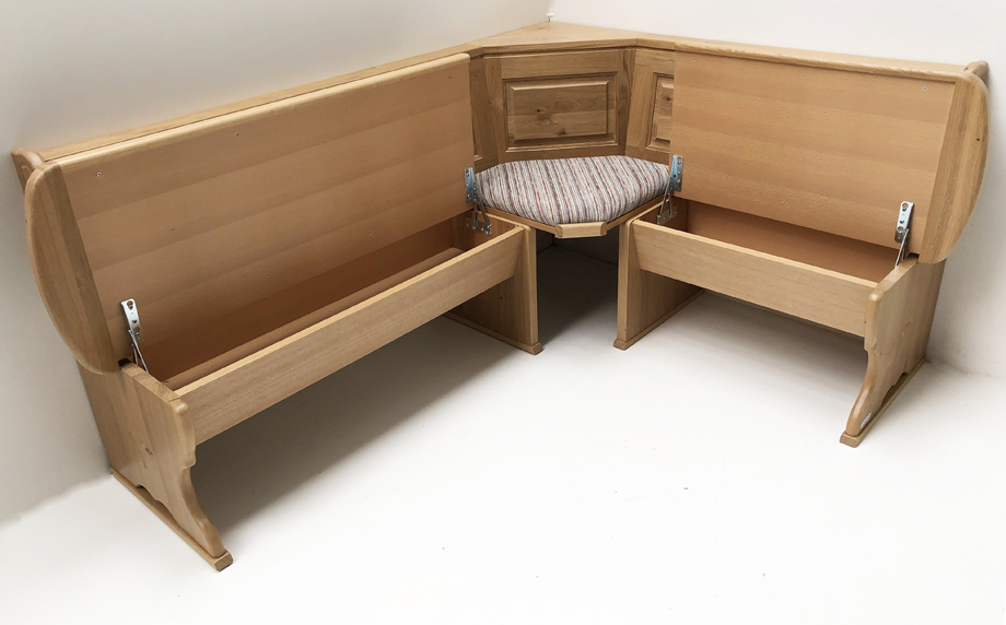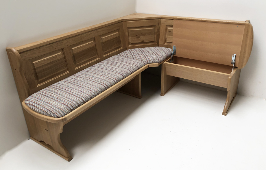 Eckbank Tegensee 149/189 cm, Truheneckbank, Eiche, Polsterplatte Stoff Salzburg MUNZERT