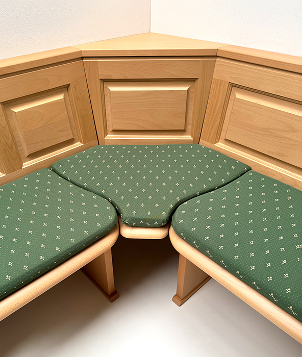 Eckbank Tegernsee Sondermaß 125/189 cm, Buche, Sitz massiv gekehlt, Polstersatz genäht, Kundl grün