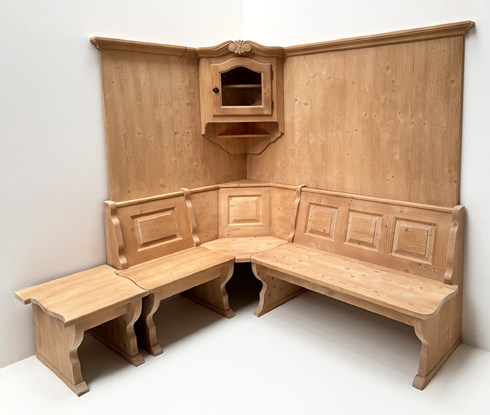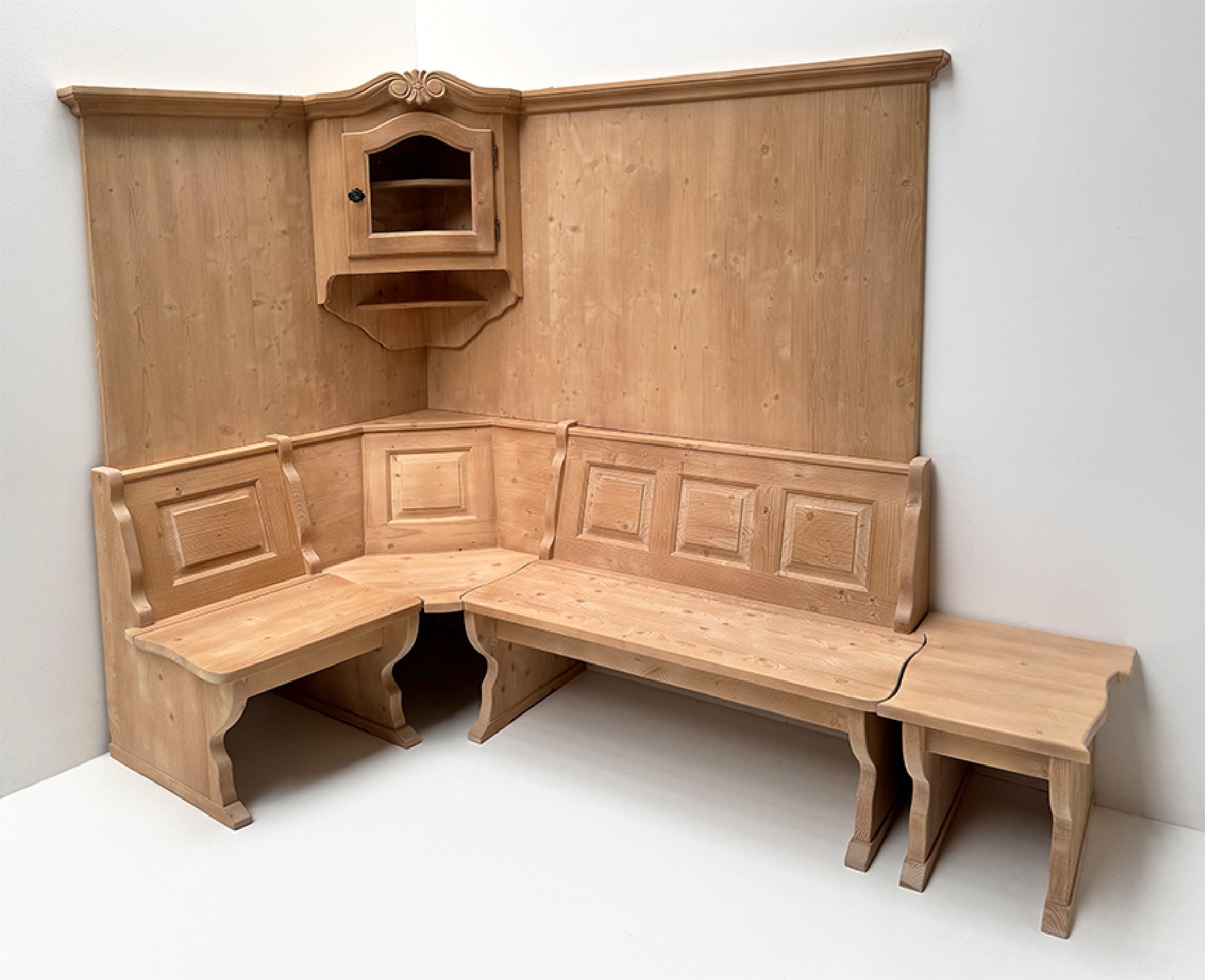 Eckbank Amberg 125/185 cm mit Wandverkleidung glatt, Eckhänger Amberg, Anstellhocker, System Amberg