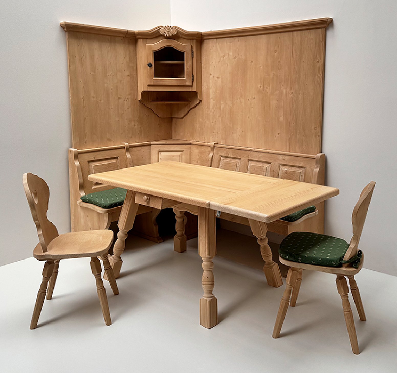 Stoff: Kundl grün, Fichte massiv, Rosner gewachst
