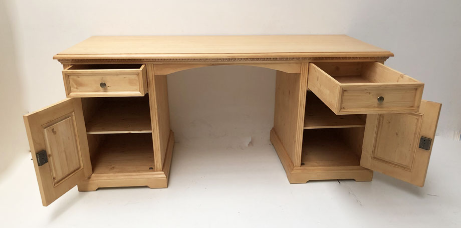 Dieser wunderschöne 2-türige Schreibtisch Victoria ist mit jeweils einem Holzfachboden