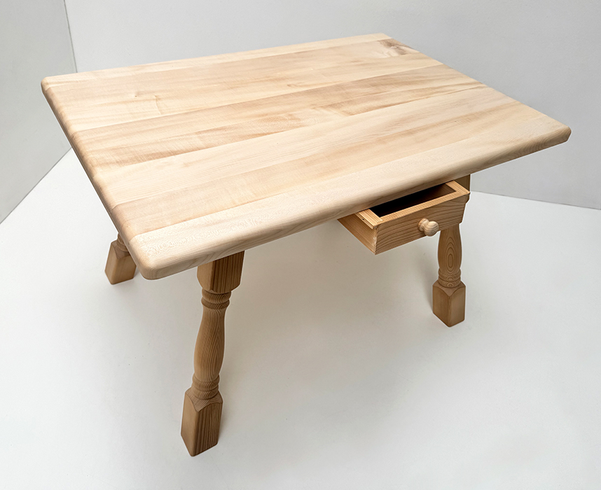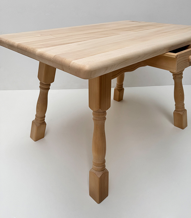Vierfußtisch 4510 Amberg 120/80 mit Schubladen, massive Ahornplatte 4 cm, natur lackiert