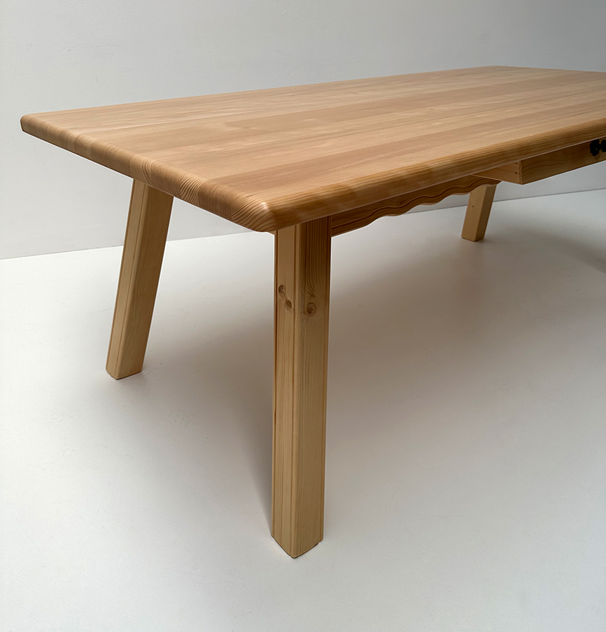 Vierfußtisch 4510 Amberg-Rosenheim,Fichteplatte 200/100 cm mit Schubladen, gerader Fuß