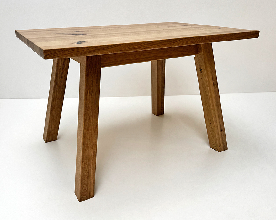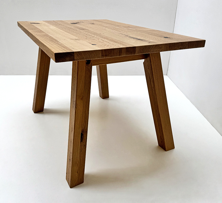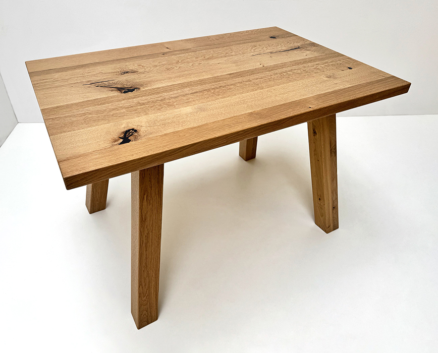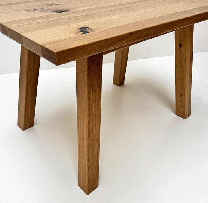 1 Vierfußtisch Modell 4510G, Fuß schräg, gerader Fuß, (ohne Schubladen für max. Beinfreiheit), gerade Zarge, Gestell Eiche, massive Wildeichenplatte,