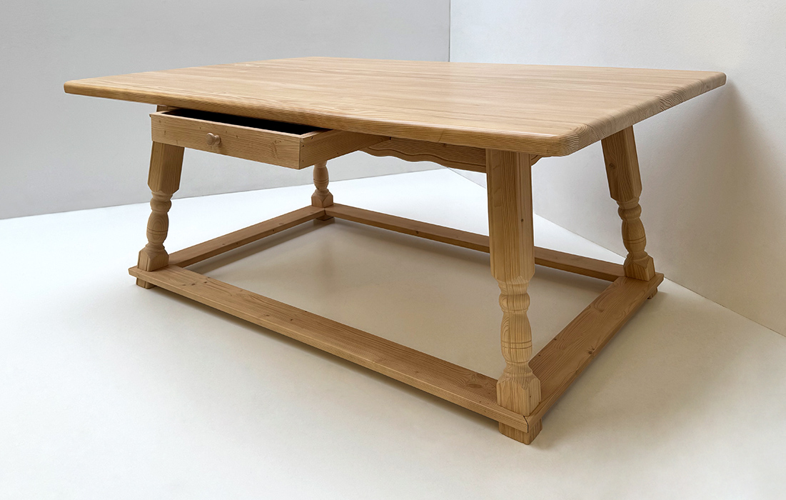 Tischgestell mit Fußrahmen, mit Schubladen, massive Fichtenplatte 4 cm stark, 120/180 cm,