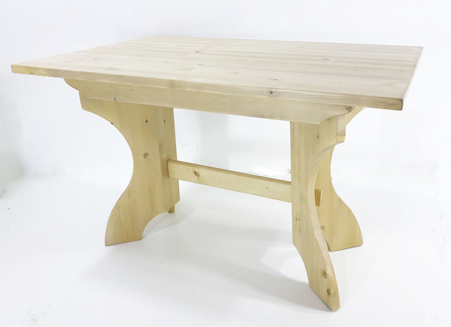 Kreuzwangentisch Mod. Bamberg 120/85 cm, mit Platte Hartholz Ahorn 4 cm, massiv, ohne Auszug, Gestell Holzart Fichte massiv.