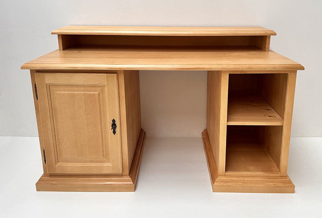 Schreibtisch 150/70/75 cm, (B/T/H), 1 Container mit Schubladen und Türe mit Schloß, 1 PC Regal, Fichte massiv