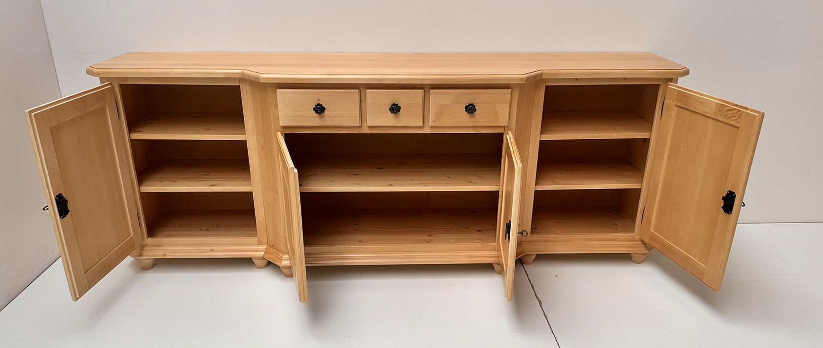 Anrichte Oberau Füssen 4-trg. 3 Schubladen , mit Kugelfüßen, 234/86/53 cm, (B/H/T) Fichte massiv ,
