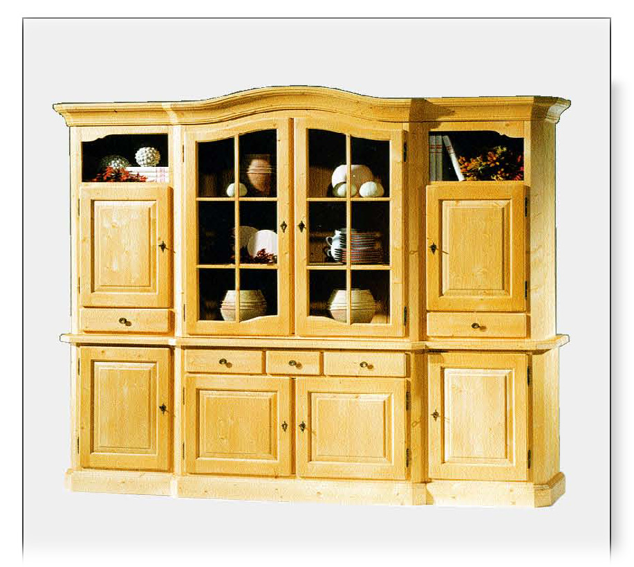 Wohnwand Oberau 4-trg. Vitrinenfront , 234/212/53 cm, (B/H/T) Fichte massiv , Rosner gewachst auch in Rosner lackiert gegen Aufpreis lieferbar , Sonderfarbtöne und Anfertigungen auf Anfrage !