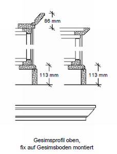 Gesimsprofil oben, fix auf Gesimsboden montiert