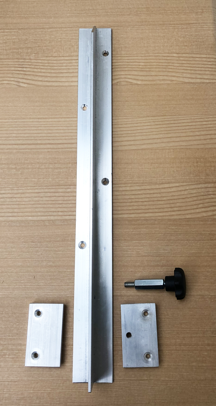Alu- Anstecksystem zur nachträglichen Anbringung inkl. Verriegelung, Satz für 1 Ansteckplatte bestehend aus aus 2 Schienen, 4 Falzblöcken, 2 Schließhaken und Schraubensatz