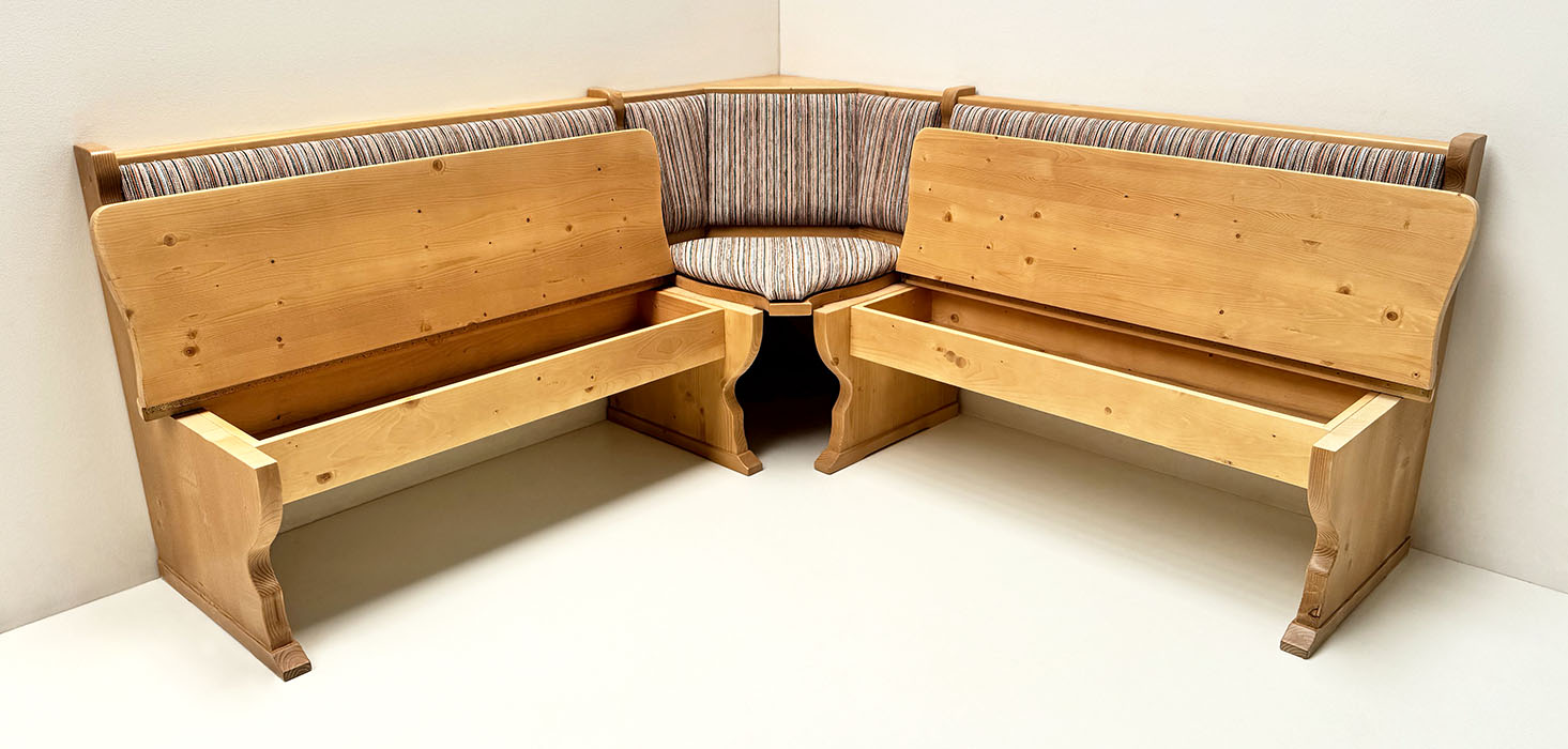 1 Eckbank 185/185 cm mit Truhen , Gesamthöhe 85 cm, mit Truhen wechselseitig stellbar Alles in Fichte massiv, Rosner Hartwachs
