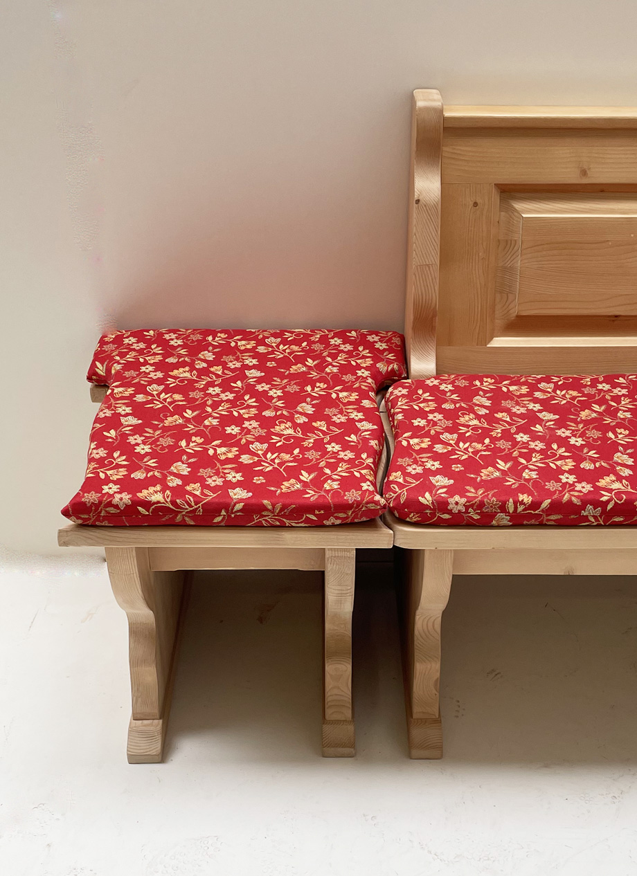Eckbank Amberg Piccolo gleichschenklig 165/165 cm solo, Truhe, Anstellhocker solo, Mülheim rot