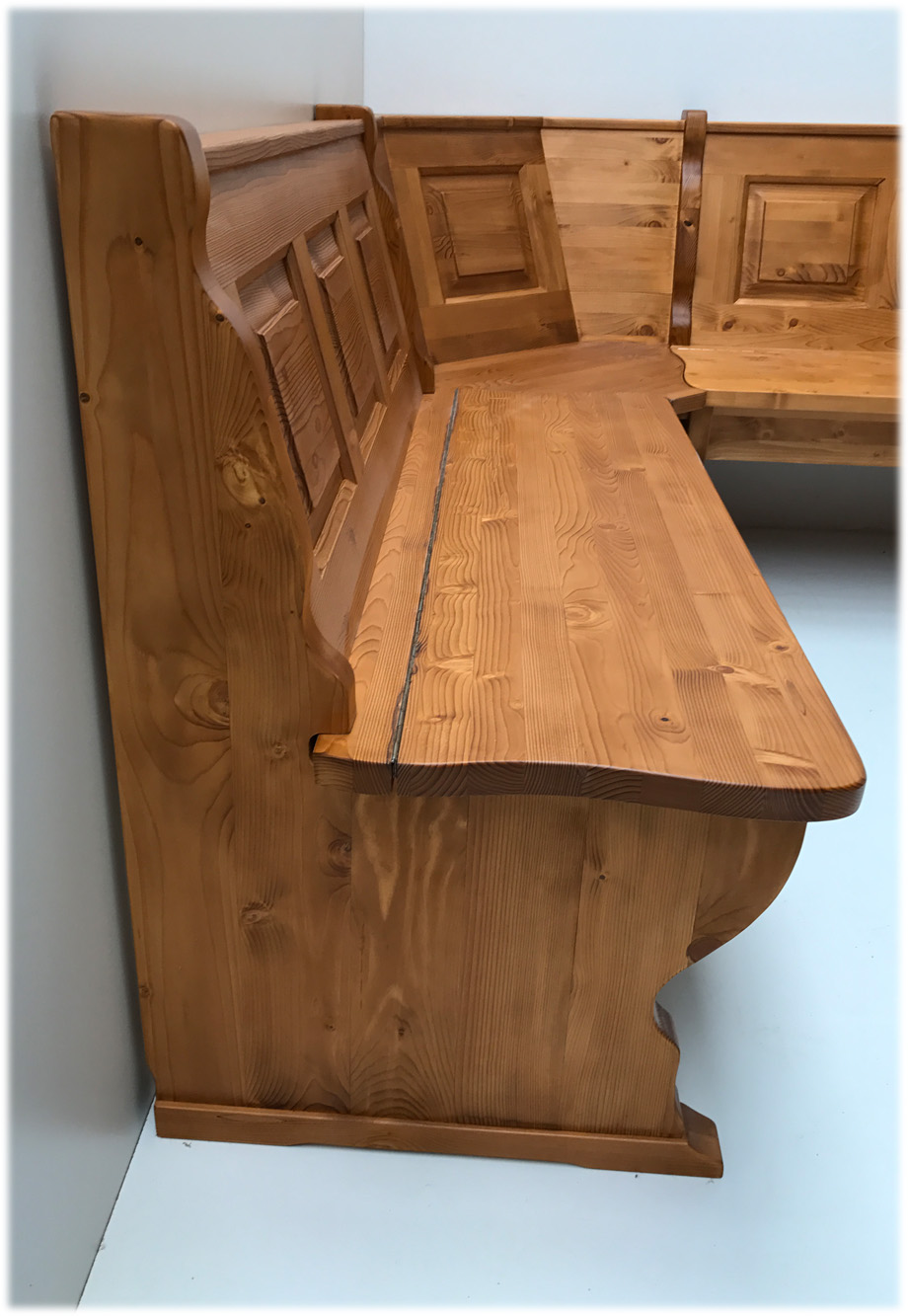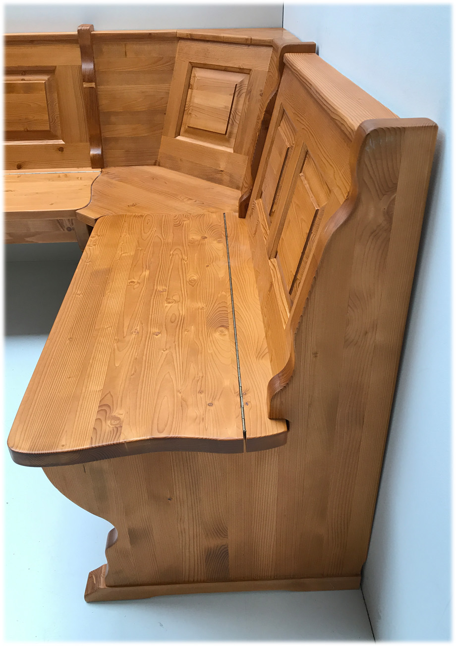 Eckbank 150/185 cm, Gesamthöhe 85 cm, mit Truhen wechselseitig stellbar Alles in Fichte massiv
