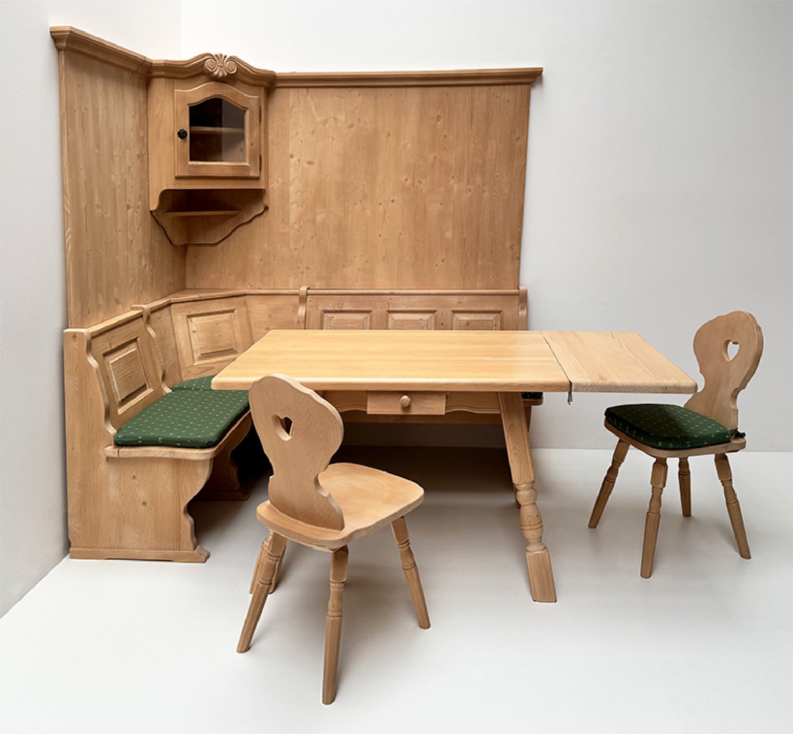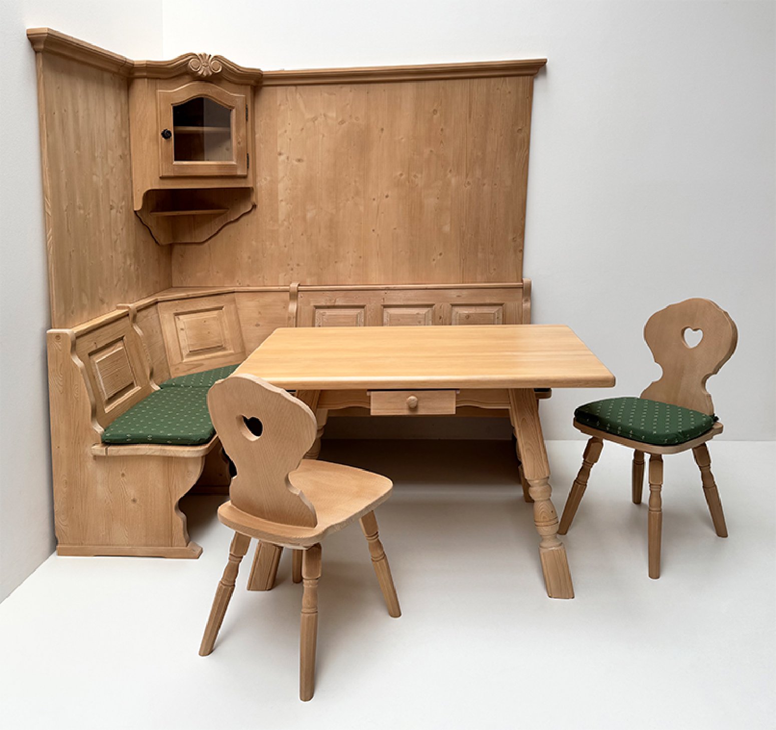 Stoff: Kundl grün, Fichte massiv, Rosner gewachst