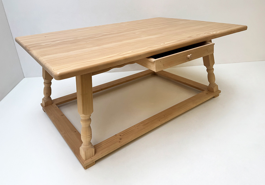 Tischgestell mit Fußrahmen, mit Schubladen, massive Fichtenplatte 4 cm stark, 120/180 cm,