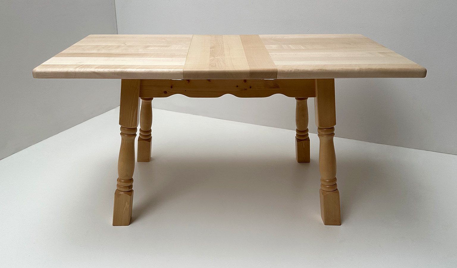 Vierfußtisch Amberg 120/80 cm mit Ansteckplatte 40 cm Fichte, mit Schublade