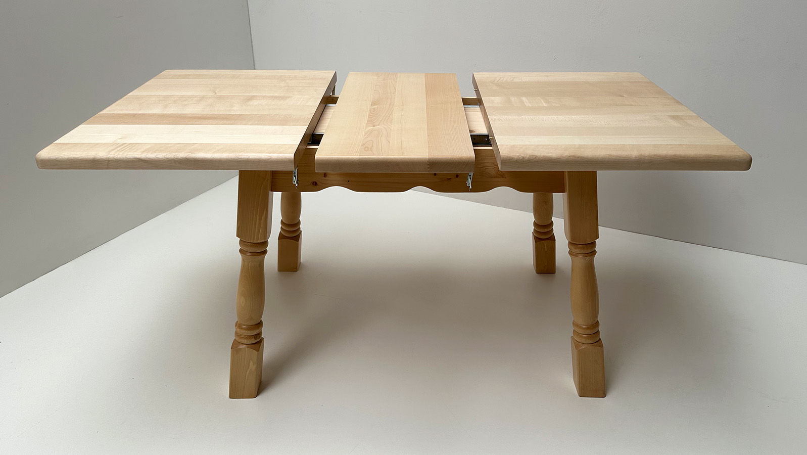 Vierfußtisch Amberg 120/80 cm mit Ahornplatte, mit Einlegeplatte 40 cm Ahorn, Maserung durchgehend !